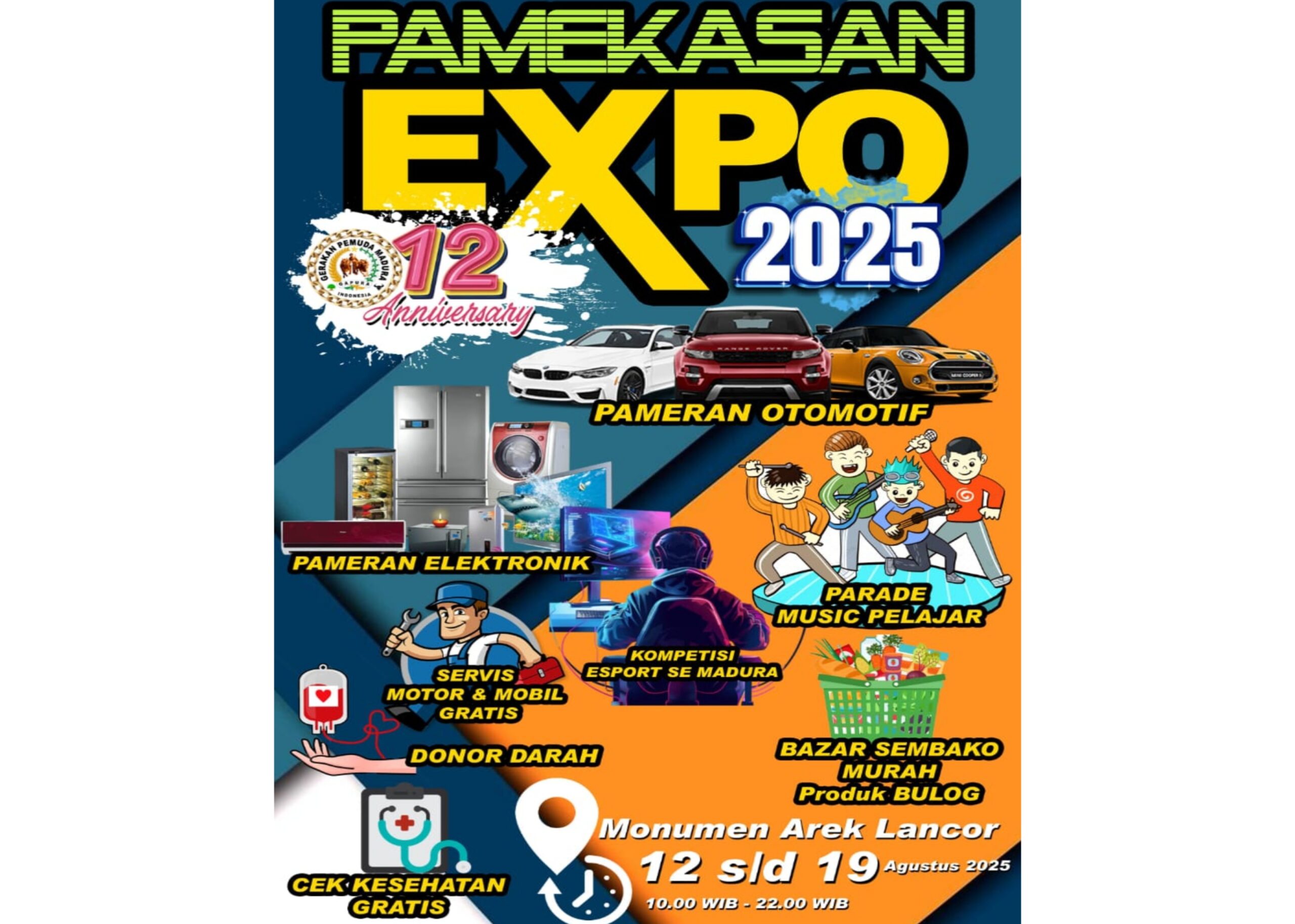 Acara yang dipusatkan di Pamekasan ini menawarkan beragam kegiatan mulai dari Pameran Otomotif dan Elektronik, Parade Musik Pelajar, Kompetisi Esport se-Madura hingga Bazar Sembako Murah produk Bulog. Warga juga dapat memanfaatkan layanan Servis Motor dan Mobil Gratis, Cek Kesehatan Gratis dan Donor Darah.