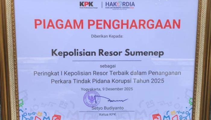 Dengan raihan prestasi tingkat nasional ini, Polres Sumenep semakin menegaskan posisinya sebagai garda terdepan dalam menjaga integritas dan memperkuat kepercayaan publik. Capaian tersebut diharapkan mampu menjadi contoh sekaligus pemacu semangat bagi satuan kewilayahan lainnya dalam meningkatkan kualitas penanganan perkara korupsi di Indonesia.